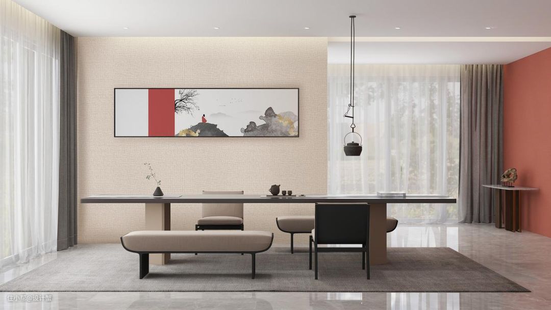 餐厅背景墙涂刷充溢质感的多乐士艺术漆肌理布纹质感BW-141浅驼绒,调配原木色餐桌,简略有用的软装就赋予了空间明晰的结构与次序感,出现出极致的东方规划美学。