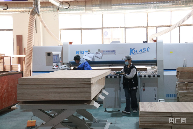 工人将加工好的家具产品分拣、打包,赶制外贸订单(央广网记者 郇康新 摄)